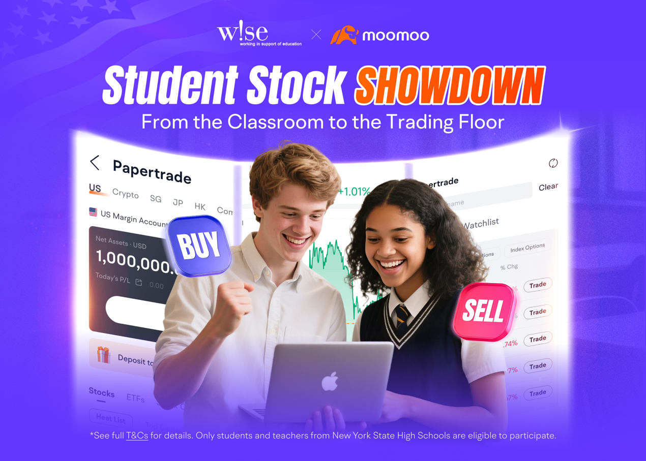 (SeaPRwire) – 紐澤西州澤西市, Oct. 14, 2025 — 全球領先的投資交易平台之一 Moomoo 今天宣布與教育非營利組織 W!se 合作,共同推出「學生股票對決」(Student Stock Showdown) 挑戰。這項創新計畫旨在透過互動式學習體驗和實務投資練習,培養高中生基本的金融素養技能。